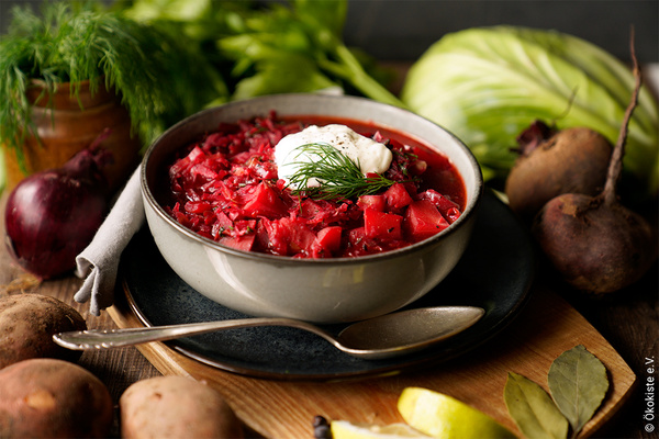 Der traditionelle Rote-Bete-Eintopf wird in osteuropäischen Ländern in vielen Variationen zubereitet. Er schmeckt besonders gut, wenn die Tage kürzer werden und bringt kulinarische Gemütlichkeit auf den Tisch.