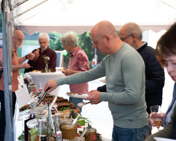 Für kulinarischen Genuss und das leibliche Wohl sorgte Claudia Lüdtke vom Hofcafé aus dem Unionsviertel, die aus dem Gemüse unserer Gärtnerei super-leckere kulinarische Kreationen für uns zauberte. Schwarzkohl-Pesto, verschiedene Chutneys und Polenta, eingelegte Gurken und Spitzkohl, sowie ausgefallene Kuchenvarietäten mit Zucchini oder Mangold - wie in jedem Jahr überraschte und überzeugte Claudia mit ungewöhnlichen und leckeren Köstlichkeiten.