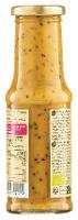 Wasser, Sonnenblumenöl*, Agavendicksaft*, Blütenhonig* 6,7 %, Branntweinessig*, Dijon SENF* 5,3 % (Wasser, Branntweinessig*, braune SENFSAAT*, Meersalz), braune SENFSAAT* 2,7 %, Meersalz, Maisstärke*, Zwiebeln*, Knoblauch*, Koriander*, schwarzer Pfeffer*, Paprika edelsüß*, Karottensaftkonzentrat*, Sonnenblumenkernmehl*, Verdickungsmittel: Guarkernmehl*.