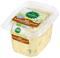 Kartoffeln* 65 %, Rapsöl*, Wasser, Gurken* 6 %, Rübenzucker*, Branntweinessig*,Zwiebeln*, Sonnenblumenprotein*, Kräuter*, Gewürze*, Meersalz, SENFSAAT*,Stärke*, Verdickungsmittel: Guarkernmehl*, Xanthan.