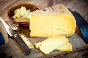 Thybo Käse hat seinen eigenen Charakter mit einem beinahe süßlichen Geschmack, er lässt sich leicht brechen und fühlt sich leicht kristallisiert an