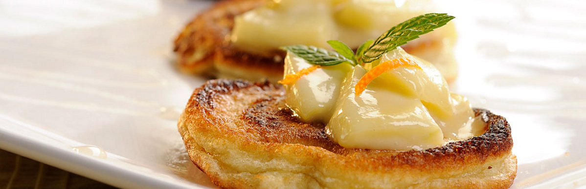 Kleine Pfannkuchen mit Apfel-Honig-Ragout